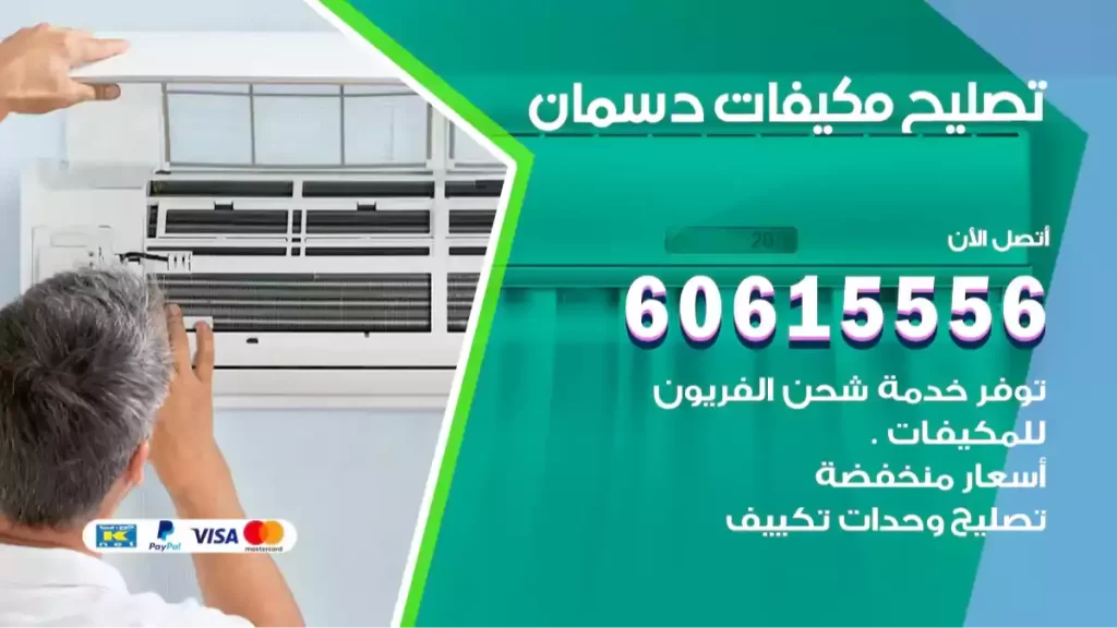 يعمل فني تصليح مكيفات دسمان على صيانة مختلف انواع المكيفات فهناك العديد من الشركات المتخصصة في صناعة أنظمة التكييف، وتوجد العديد من الأنواع المتميزة بأداء عالي وجودة ممتازة.